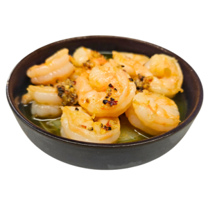 Shrimp simmered in a roasted garlic; olive oil sauce seasoned with red chili flakes, black pepper. Served with garlic bread.