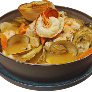 Our tasty SEAFOOD soup with local littlenecks, oyster, mussels, lobster, assorted fresh seafood, potatoes, carrots, simmered in our home-made sea…
