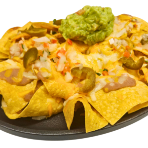 Corn tortilla chips topped with pinto beans, pico de gallo, jalapeños, monterrey & cheddar cheese, sour cream, guacamole. Add Chicken…
